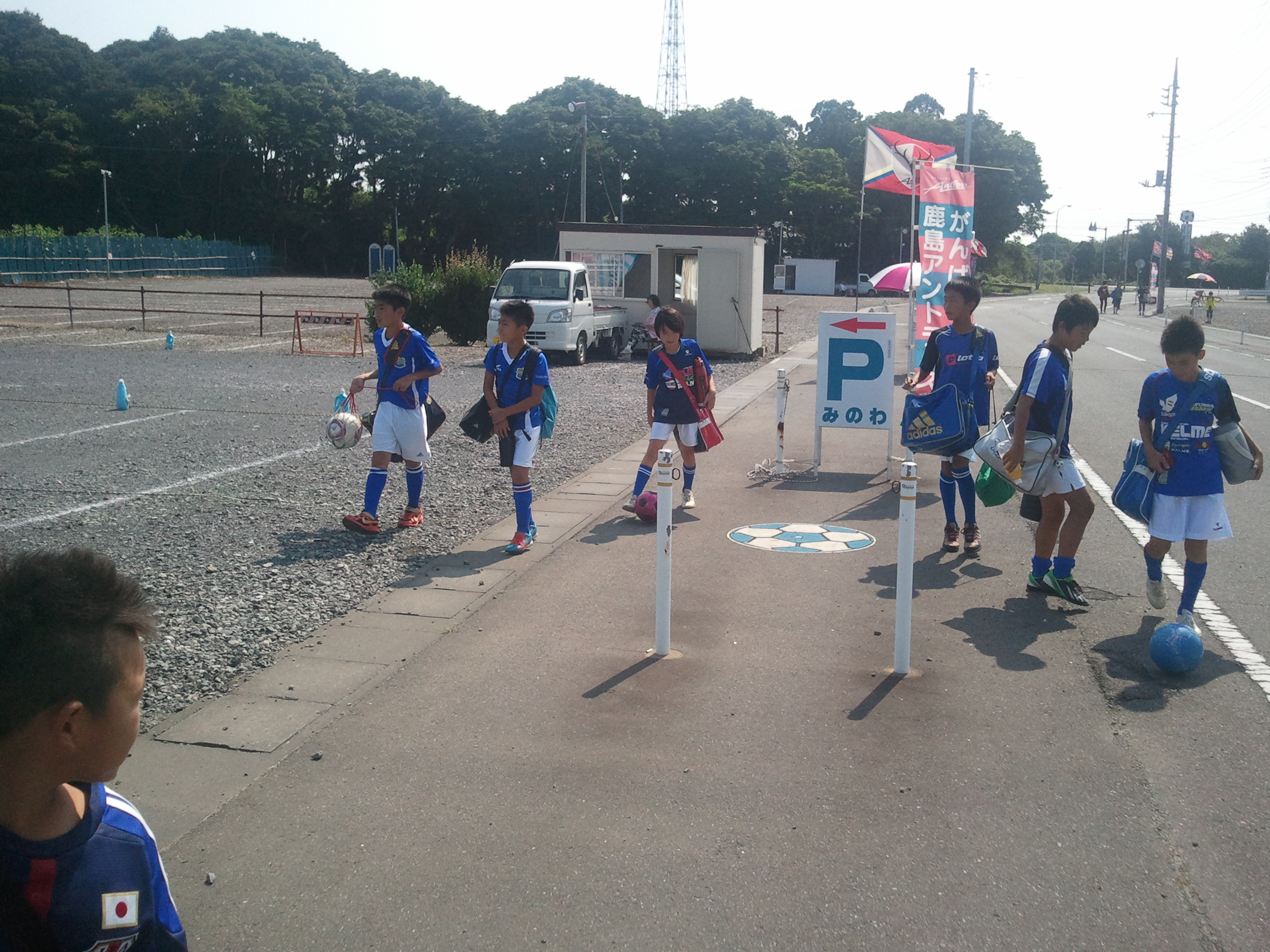 スルガ銀行カップの鹿島アントラーズ対サンパウロFCの試合観戦とその前に行われるゲーム大会「マッチデーフェスティバル」に参加しました。今回は前回5月のゴールデンウィークのときよりも人数も、参加するカテゴリーも増えて、2~6年生まで総勢26人での参加です。