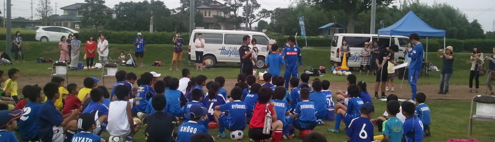 「ら ん」が表彰され無事閉会式が終了、そのあとはこのクアトロサッカー大会のお手伝いに来てくれたホーリーホックの飯田、岡田両選手から参加賞を手渡されまし た。「ゆきマール」は飯田選手に名前も覚えてもらったみたいで、よかったですね。まああのヘアスタイル、オーラありありですからね。