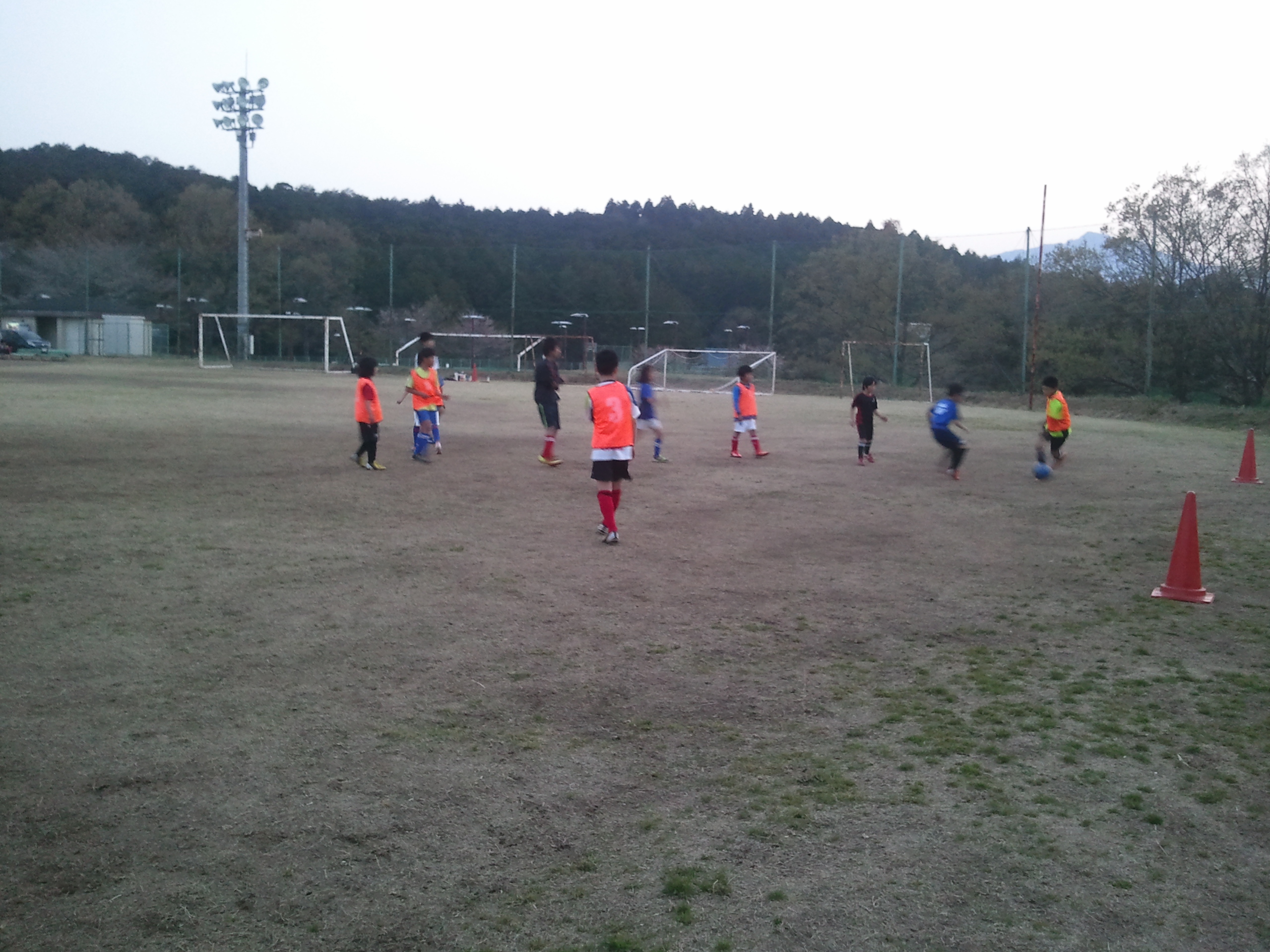 ドリブルゲーム 投稿日時: 2014年4月15日 投稿者: yss2011 今日はドリブルだけというゲームを長めに行いました。サッカーの要素とは大きくかけ離れますが、個人の技術をあげるにはいいと思い、かなりの時間を費やしました。最初は思うようにできなかったのですが、人数が増えるに従って自分でドリブルのコースを見つけることができる選手が出てきたようです。特に中学生の二人がスクールの雰囲気を引き締めてくれ、また見本となってくれました。