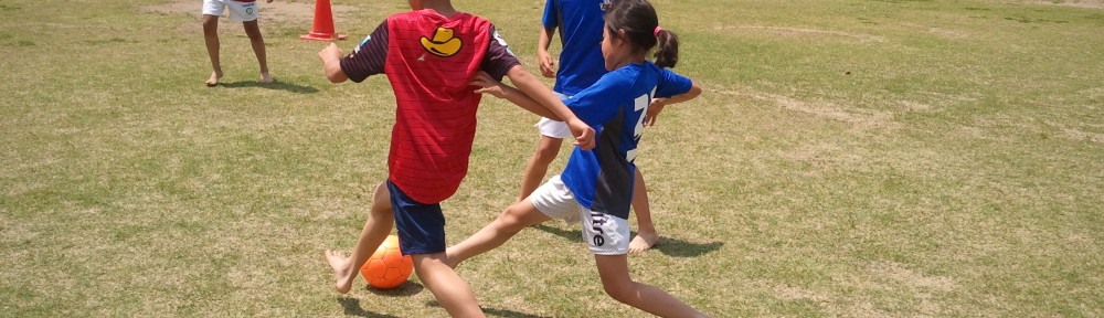 土曜日は暑い中だったのでスパイクやトレシューを脱いで裸足でトレーニングを行いました。素足でボールを扱うのがはじめての人もいたようですが、ボールタッチはもちろん色々な刺激があってよかったのではと思います。ブラジルっぽいのも・・・。