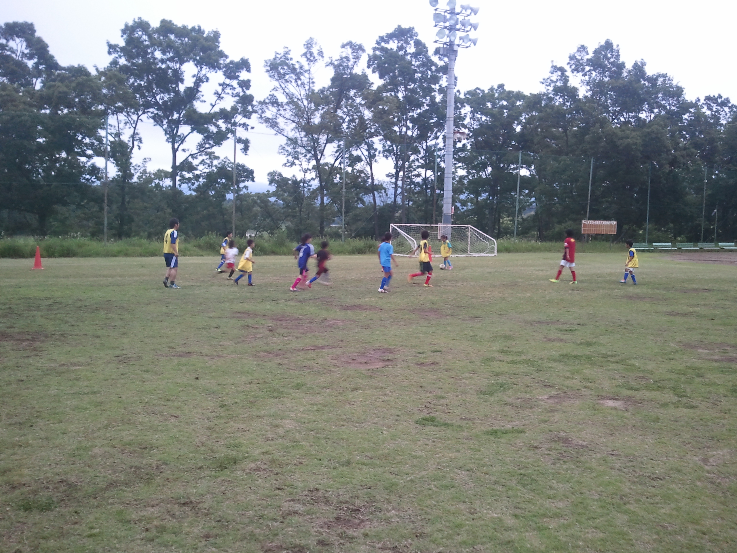 練習前に子供たちが遊んでいる様子を遠くで眺めていました。学年とか学校など関係なしにみんな楽しそうでいい雰囲気でしたね。「かな」が色々とコミュニケーションをとってくれて、最近入会した2年生もすんなりと溶け込んでくれています。