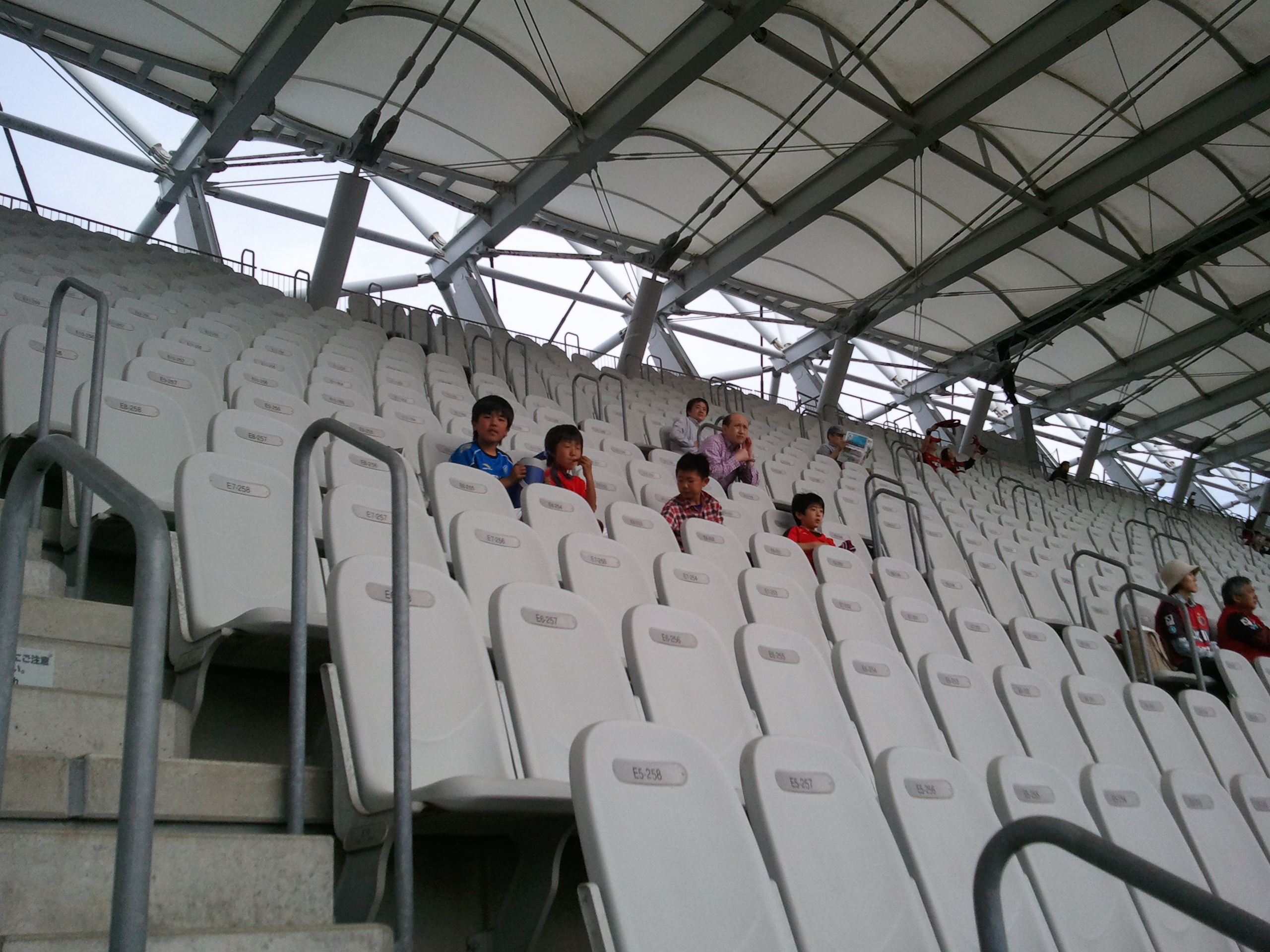 ということでそのままJリーグの試合観戦へ・・・、試合はバックスタンド2階の席を用意しました。割と人が少ないところでゆったりと座って観戦することができます。最初は気の合う仲間同士で仲良く観戦していました。