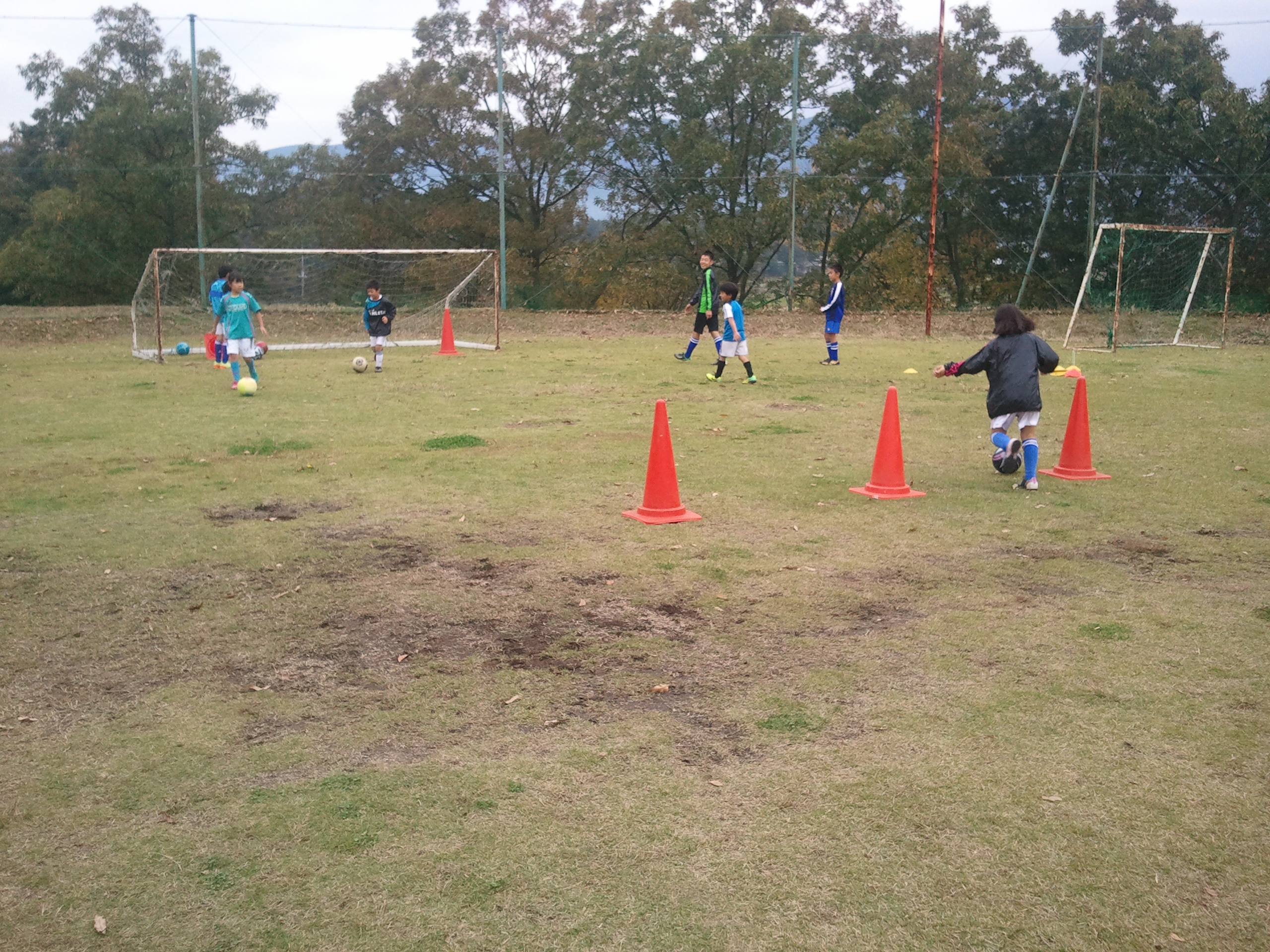 体の軸とリズム 投稿日時: 2014年11月9日 投稿者: yss2011 昨日の通常スクールは午前中に行いました。参加してくれたのは低学年を中心にした10人、途中ややダレましたがそれでもみんな意欲的によくやっていたと思 います。体の軸、リズム、そういう部分に磨きをかけてシュート練習へ、気持ちよくいいシュートをガンガン打っていたのは3、4人。そのメンバーがリフティ ングレースでも引っ張っていることからも、そのつながりを理解できたと思います。ただの回数だけのリフティングにならない、意味のある、つながりのあるリ フティング、次回からはそこを意識してもらえればと思います。