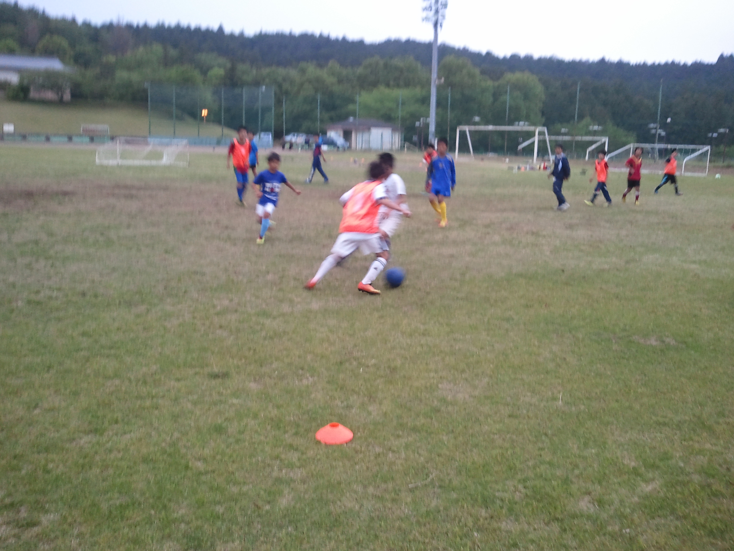高学年(+4年生2人)はコーンドリブルのあと、2対2、ゲームを行いました。こちらはある程度本 人たちに任せてみましたが、その意識にはまだまだ個人差があるようです。特に低学年の好プレーをみせられたあとですので、こちらからは危機感しか感じられ ません。なにか起爆剤になるようなことはないのでしょうか?
