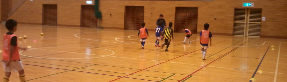 夕方からは場所をラスカの体育館に移してのフットサル練習会がありました。フットサル特有の戦術練 習などではなく、サッカー、フットサルに共通する部分をトレーニングしています。昨日はドリブルからパス、ドリブルからドリブルといった感じのゴールを奪 う(守る)ために必要な色々な判断のともなうトレーニングをメインに行いました。最初はいつもと違う雰囲気、練習内容に四苦八苦だった選手たちも次第に自 らの判断で色々な自分を表現できるようになって来ました。宇宙人のようだった子どもたちもいろいろなアイディアが出るようになってきて、サッカー選手とし ての成長を感じさせてくれましたね。オフザピッチでは相変わらずですが・・・。