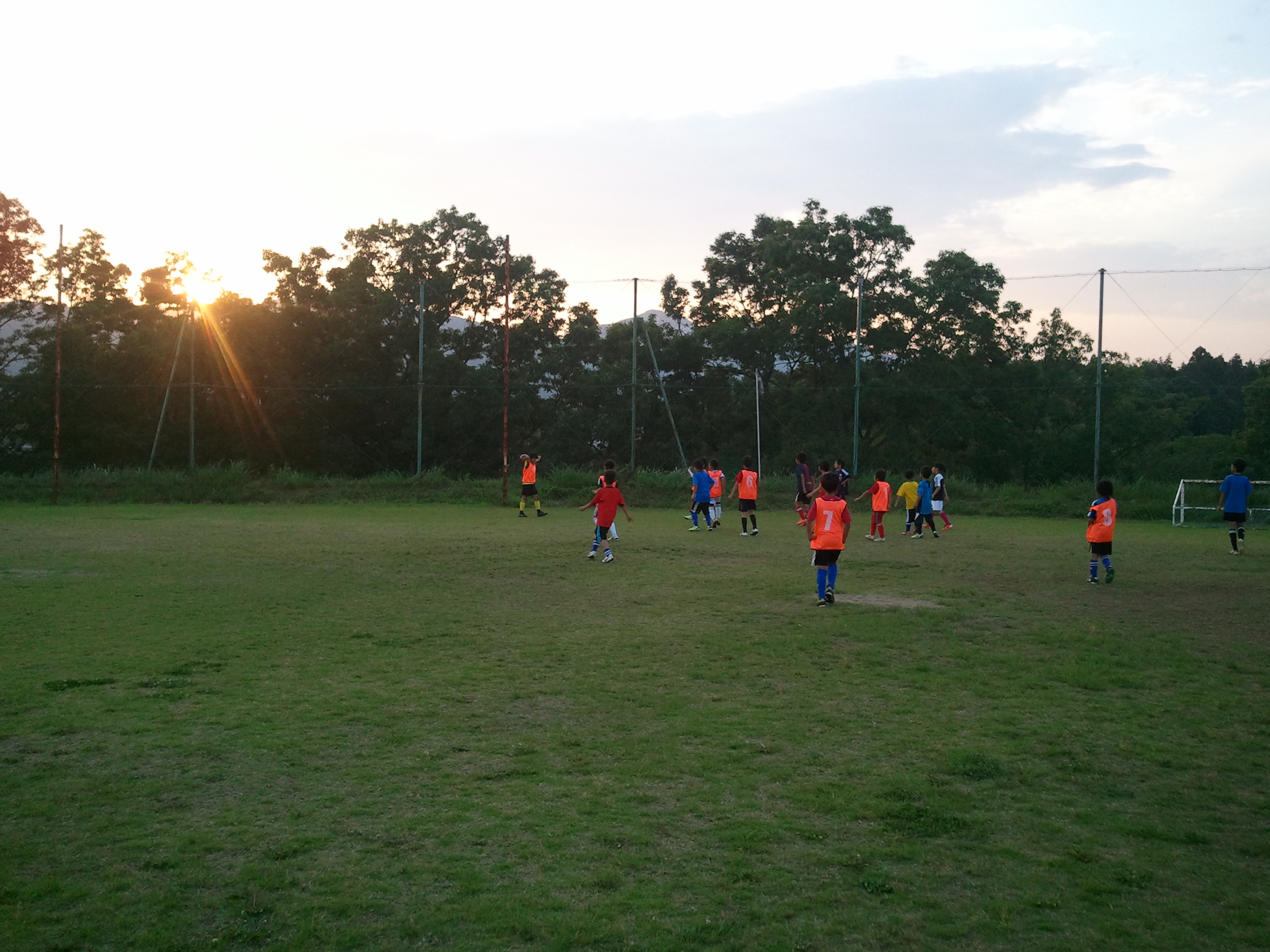 最近暑くなってきて今日もなかなか涼しくなりませんでした。その暑い中ではじまった今日のYSSは、ウォーミングアップからパス&コントロール、そのあと の2対1など連続して動き回ることでかなり疲労度が高まったみたいです。しっかり走って、たくさんボールに触って、大いに汗をかいてもらえればそれでOKです。今日それが形にならなくても必ずや形になる時が来るはずです。そう願いながら、そう信じていつもピッチに立っています。