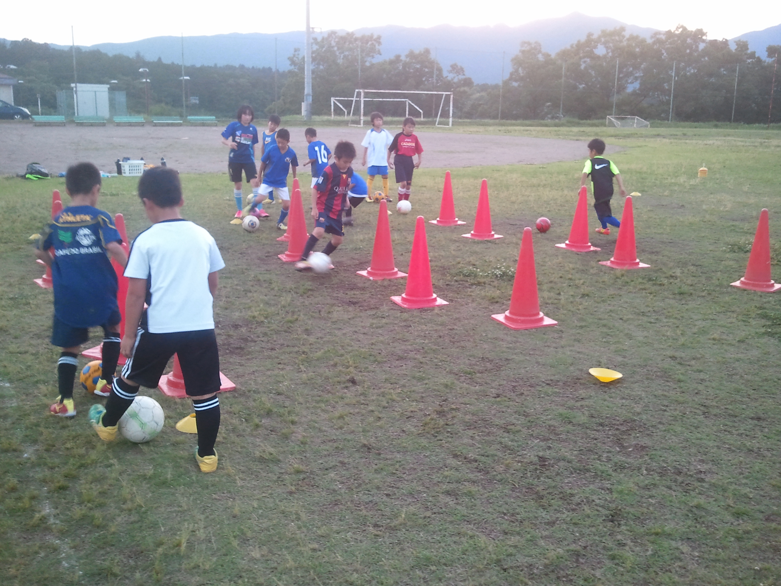 スペクラは攻撃のときの守備の準備、守備のときの攻撃の準備などを意識させながら行いました。できない理由よりもできる方法を考える、こんな感じで進めて いきましたが、内容的にはまあまあ。 その中でも4年生のピピ君(今じゃ泣かなくなったけど・・・)がすこぶる好調です。滝のような汗をかきながら今日も練習に参加、最後まで拘って触っていま した。最近、色々な経験を積んできたことで技術面はもちろん人間的にも幅を広げたような感じです。今後も継続して行きましょう!
