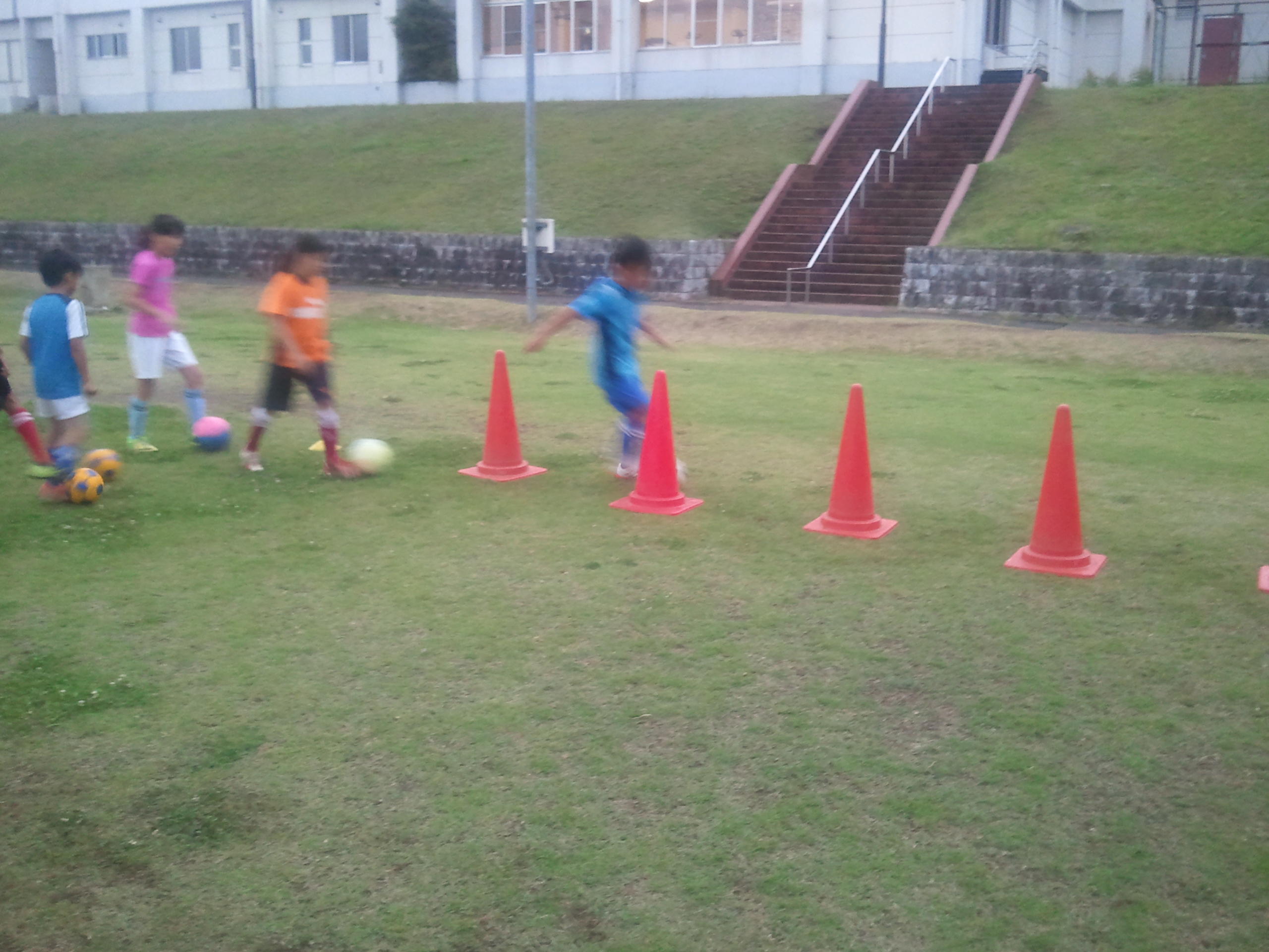 今日のスクールは嫌な空模様でしたが、なんとか持ちこたえてくれて予定時刻に終了となりました。ただ、このピッチ上になんども雷が落ちました。