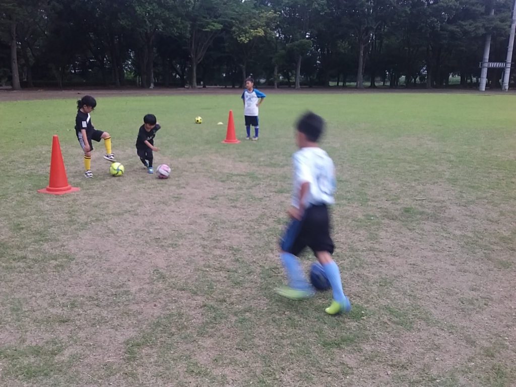 キッズクラスは少しずつサッカーっぽい動きが出てきました。いきなりは難しいので、まずは伸び伸びと楽しんでくれたらと思います。