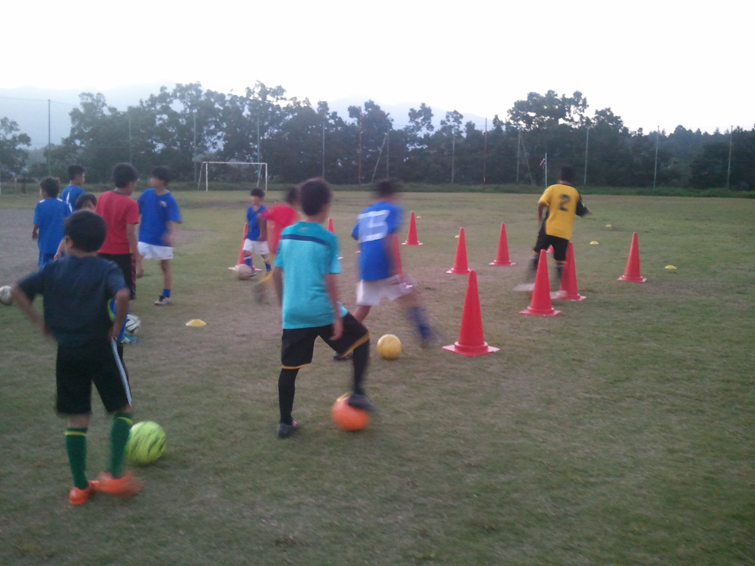 長い一日の締めくくりはスクール。通常スクール内にドリブルクラスを入れてのスクールとなりましたが、こちらにも先ほど試合をしたばかりのスクール生など多く の選手が参加してくれました。先ほどは相手同士だった選手が今度は仲間というかライバル、そういう競争の原理がうまく働いてくれればいいのですがやはり途 中で脱線、そこで一度だけピシャリ。